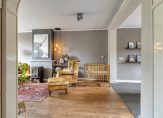 Als je in de woonkamer staat, is de kans groot dat er grote glimlach op je gezicht verschijnt. De totale lengte is maar liefst 10 meter, met het zitgedeelte bij de houtkachel en het eetgedeelte bij de pui met openslaande tuindeuren. De parketvloer toont karakter en de warme kleuren zorgen voor een woonkamer met sfeer.