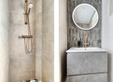 In 2024 is de badkamer vernieuwd, met gebruik van mooie materialen in warme kleuren. De ruimte is ingedeeld met een ruime douche en een wastafelmeubel. Fraaie elementen zijn de koperkleurige kranen, de ronde spiegel met verlichting en de stijlvolle wandtegels.