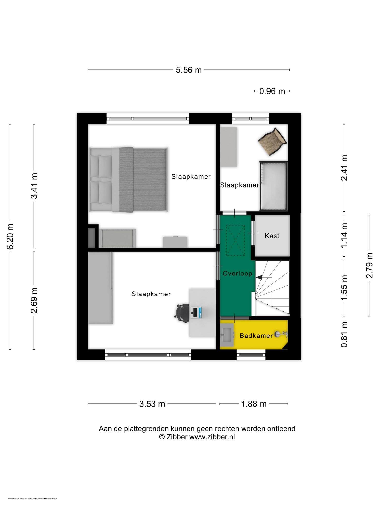Aan de achterzijde zijn twee slaapkamers, waarvan een als master bedroom in gebruik is. De naastgelegen kamer is in gebruik als kinderkamer, en de ruime slaapkamer aan de voorzijde als kleed-/werkkamer.