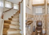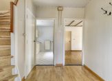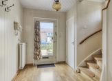 De officiële entree van deze woning is aan de voorzijde. En niet zomaar een entree, maar een voordeur met een prachtige omlijsting is het begin van je kennismaking met dit huis. Achter deze deur is de hal, met aan de linkerzijde een toiletruimte en de trap naar de eerste verdieping.