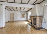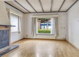 Vanuit de hal zijn de woonkamer en keuken in het voorhuis te bereiken. De woonkamer, met lichtinval van drie zijden, heeft een klassieke haardpartij en de naastgelegen keuken is ingericht met een dubbele wandopstelling. Het spoelgedeelte, met een dubbele spoelbak, is aan de raamzijde.