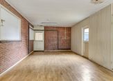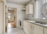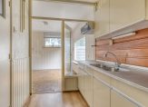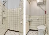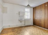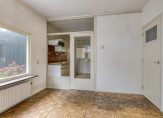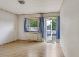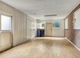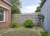 Een deur in de woonkamer geeft toegang tot het achterhuis. De eerste ruimte, in gebruik geweest als bijkeuken, heeft een eigen entree vanaf de carport. Verder zijn er twee (slaap)kamers, een keuken met een eenvoudige opstelling, een doucheruimte/badkamer en een toilet.