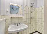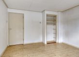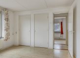 In de hal is de trap naar de eerste verdieping, waar drie slaapkamers en een badkamer zijn. Er zijn twee slaapkamers aan de achterzijde, waarvan een met een deur naar het dakterras. Beide kamers hebben, net als de slaapkamer aan de voorzijde, een of twee inbouwkasten. De badkamer op deze verdieping is ingedeeld met een ruime douche, wastafel en een toilet.