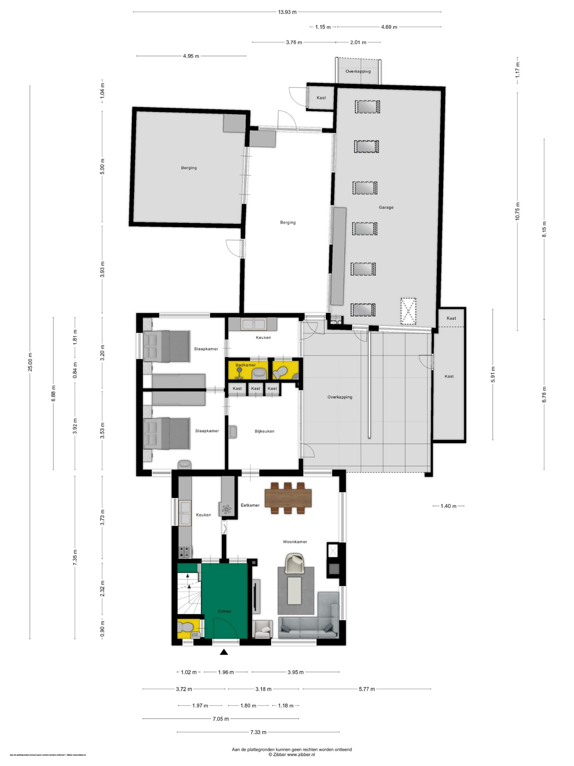 – Meer dan 10 meter lange garage met een carport en oprit;