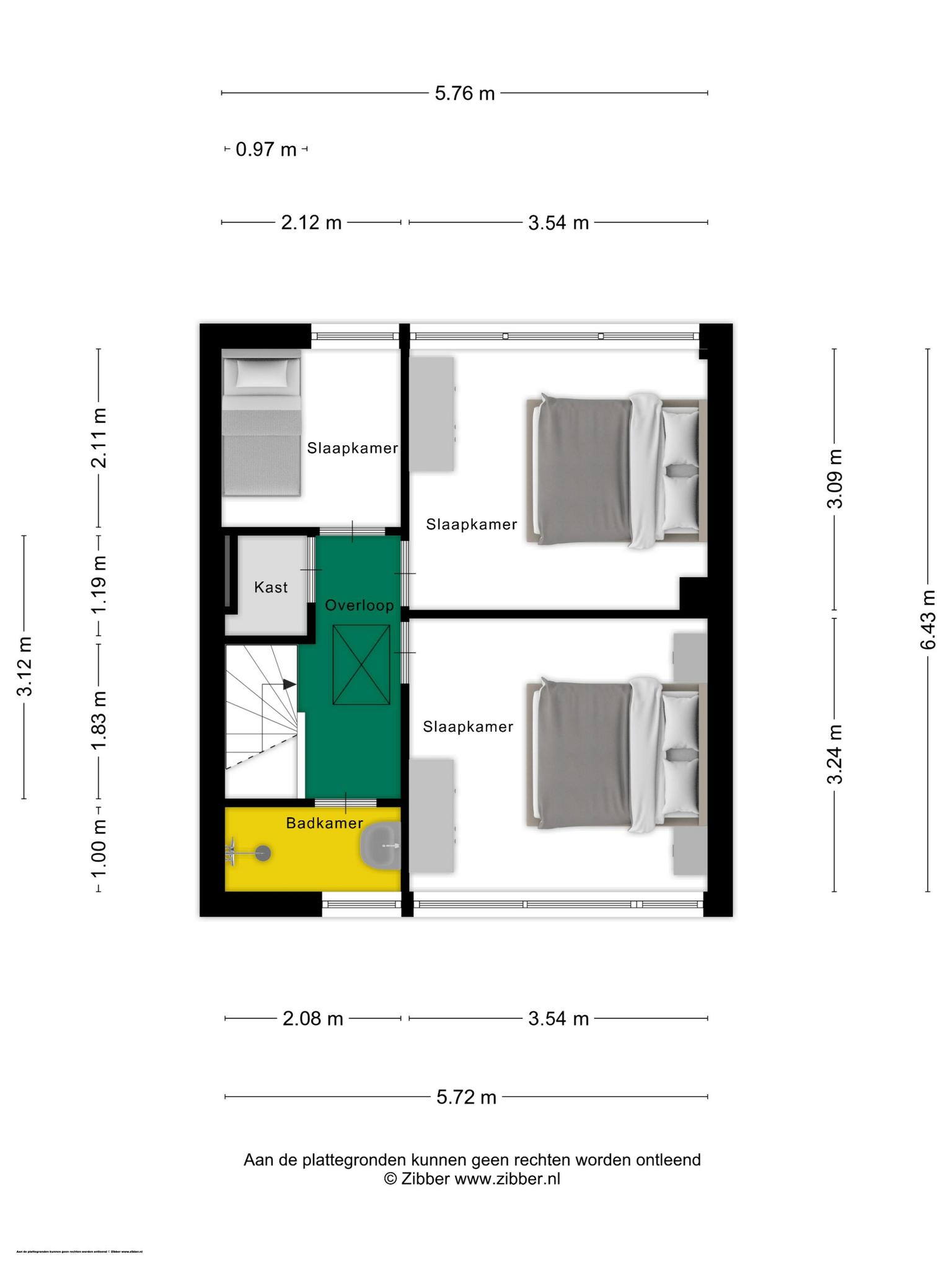 Vanaf de overloop zijn drie slaapkamers te bereiken, twee aan de achterzijde en een aan de voorzijde. Twee kamers zijn groot genoeg om in te richten als tweepersoonskamer, en de derde slaapkamer is een prima kinderkamer, werkkamer, kleedruimte of badkamer. Naast deze kamer is een vaste kast, die vanaf de overloop te bereiken is.