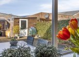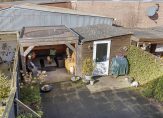 Vanuit de keuken loop je de achtertuin in, gesitueerd op het noordwesten. Een groot deel van de tuin is bestraat en aan de houten berging is in 2022 een overkapping gebouwd, in gebruik als overdekt terras. En zoek je een plek voor de fiets(en)? In de berging is plek voor meerdere tweewielers en er is een poort naar de steeg.
