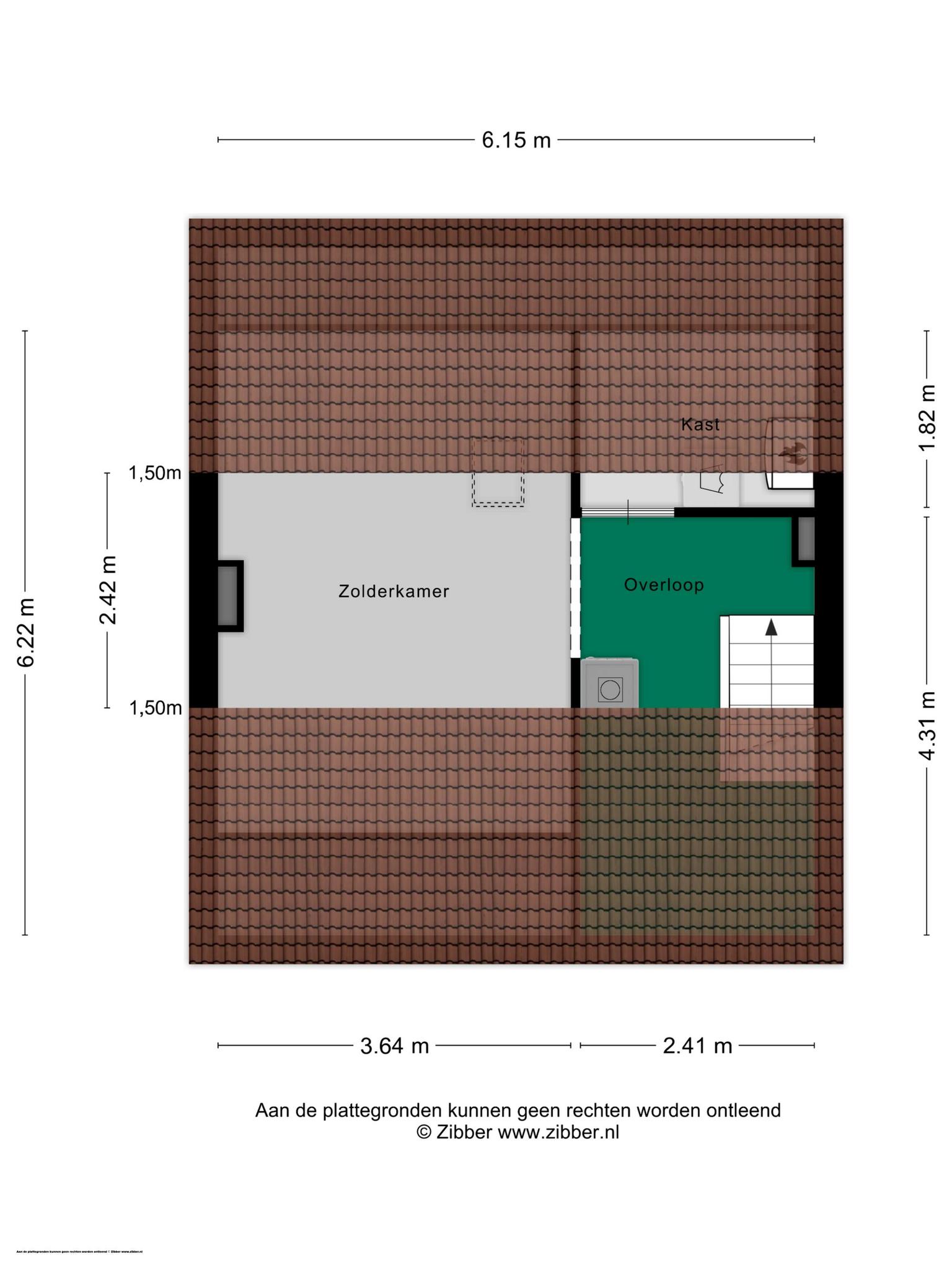 Er is een vaste trap geplaatst, die toegang geeft tot de tweede verdieping. Vanaf de overloop heb je toegang tot een cv-/wasruimte en een zolderkamer, met een dakraam aan de achterzijde.