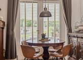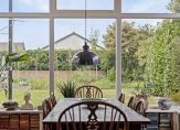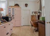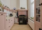 De keuken, aan de achterzijde van het herenhuis, heeft een ruime opzet en is groot genoeg om een tweede eettafel neer te zetten. Openslaande deuren verbinden de keuken met het terras en de tuin. In de keuken staat een handgemaakte keukenopstelling met een klassieke schouw, servieskast en vele fraaie details.