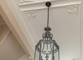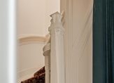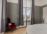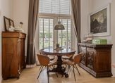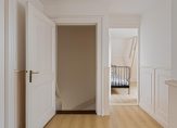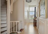 Niet alleen de hal, maar ook de overloop is over de hele lengte van het herenhuis. Alle elementen zijn op de overloop aanwezig, van een hoog stijlplafond tot paneeldeuren en houten lambrisering.