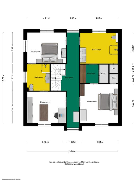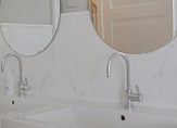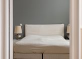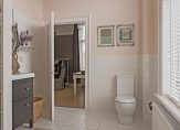 De slaapkamers aan de linkerzijde, thans ingericht als logeerkamer en werkkamer, hebben beiden toegang tot de tweede badkamer met een inloopdouche, toilet en een wastafelmeubel.