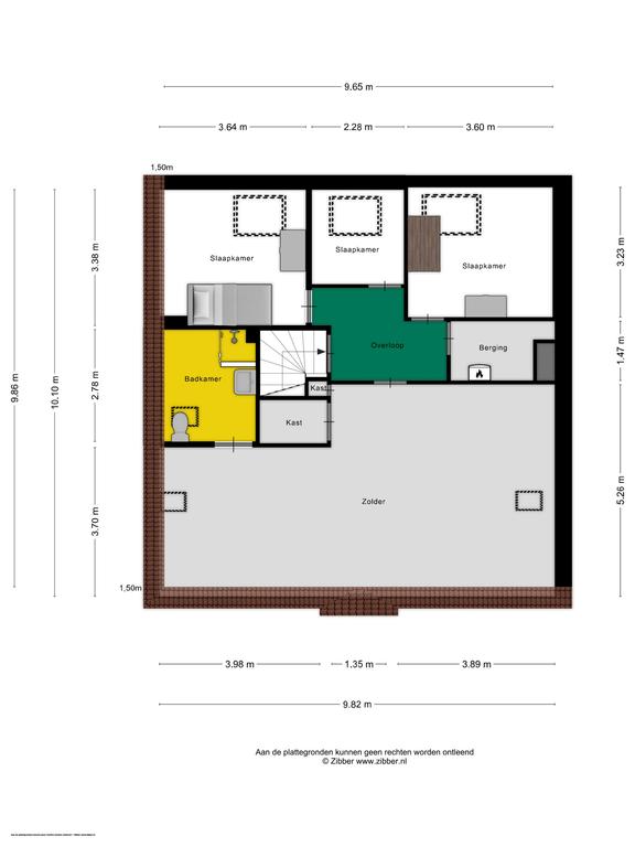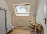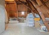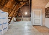 De bijna 10 meter brede zolder biedt fraai zicht op de dakconstructie en is klaar voor een nieuwe invulling. Dit kan als berging, maar ook als speelzolder of voor het realiseren van extra kamers of een inpandig appartement voor familie.