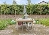 Het herenhuis wordt omringd door een mooi aangelegde, ruime tuin met meerdere terrassen en een waardevolle solitaire eik. De gevarieerde beplanting en het gazon zorgen voor een tuin met sfeer en stijl, waar je de hele dag in de zon kan zitten. Er staan twee bijgebouwen, waarvan één met een tweede keukenopstelling (zonder wateraansluiting) en de oprit biedt, net als de carport, ruime parkeergelegenheid op eigen terrein.