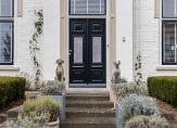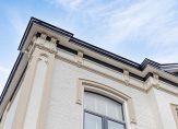 Symmetrie voert de boventoon bij de voorgevel, met de entree in het midden en grote ramen aan weerszijden. Bewonder de vele details rondom de ramen en voordeur, die toegang geeft tot een bijna 10 meter lange hal. Hier zie je de prachtige trapgang en paneeldeuren, die toegang geven tot de toiletruimte en diverse leefruimtes.