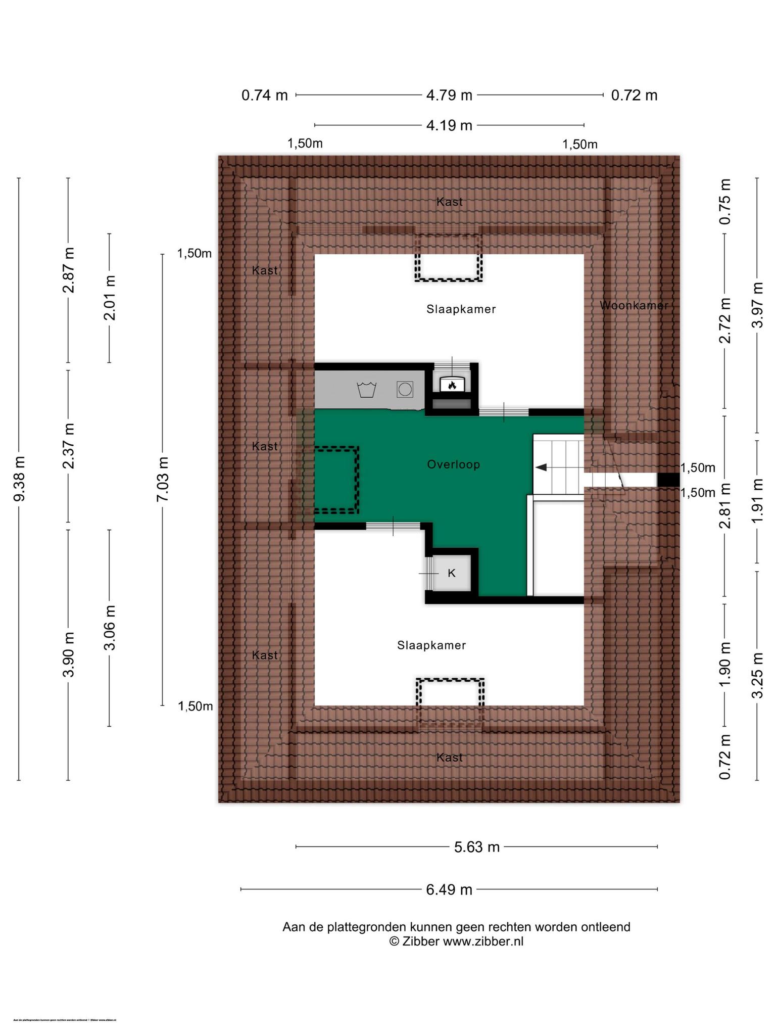 De trap gaat verder naar de tweede verdieping, waar als eerste de overloop annex wasruimte is. Vanaf hier zijn twee slaapkamers te bereiken, waarmee het totaal op vijf komt. Beide slaapkamers hebben een groot dakraam en veel praktische bergruimte in de schuinten van het dak. En ook op deze verdieping geldt; het uitzicht is fraai, vooral aan de achterzijde.