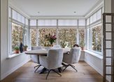 Twee stijlvolle schuifdeuren verbinden de woon-/eetkamer met de eetkeuken. Met ramen aan twee zijden en openslaande tuindeuren, geflankeerd door hoge ramen, is dit een heerlijk lichte ruimte. De keukenopstelling is geplaatst over bijna de hele lengte van de keuken, met een aanrechtblad van natuursteen en alle benodigde inbouwapparatuur.