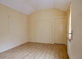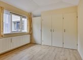 De slaapkamer is een mooie ruimte met inbouwkasten, een hoog plafond en laminaat op de vloer. Er is genoeg ruimte om een groot tweepersoonsbed neer te zetten. In het verlengde van de slaapkamer is de verwarmde bijkeuken met een plavuizen vloer, uitstortgootsteen en de wasmachineaansluiting. Met de was loop je zo naar de tuin, om deze in de wind te drogen.