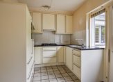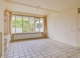 De L-vormige woonkamer is een goed in te delen leefruimte met het ruime zitgedeelte aan de voorzijde en het eetgedeelte aan de achterzijde, naast de keuken. Blikvanger is de strakke schouw met gashaard, die voor een aangename warmte zorgt.