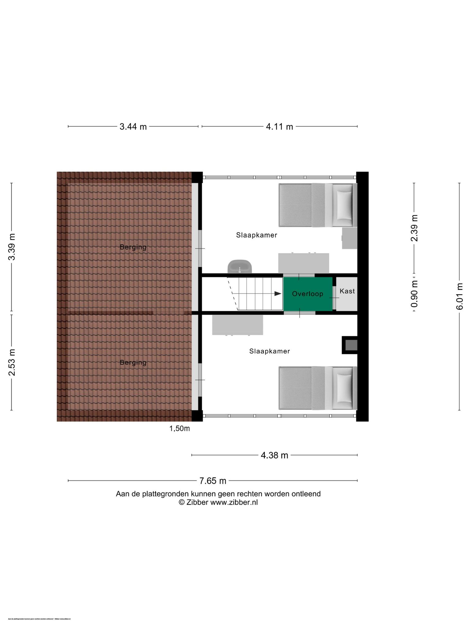 Op de eerste verdieping zijn twee slaapkamers met mooie, grote raampartijen en zicht tot in de nok. In de slaapkamer aan de achterzijde hangt een wastafel en vanuit beide slaapkamers is een handige berging te bereiken, in het schuine dakvlak aan de linkerzijde. Beide slaapkamers grenzen aan een overloop met handige bergkast.