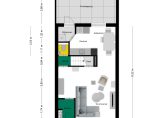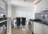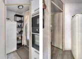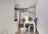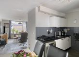 Via het eetgedeelte is de keuken te bereiken, die in 2020 deels is vernieuwd. Nu staat er niet alleen een keukenblok met een spoelbak, maar ook een hoge kastenwand. De gaskookplaat, oven en magnetron blijven achter, en in de bijkeuken is plek om een koel-/vriescombinatie neer te zetten.