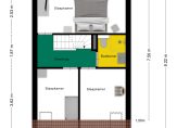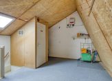 Er is een vaste trap naar de tweede verdieping met mogelijkheden voor een extra slaapkamer, werkkamer, hobbyruimte of een speelkamer voor de kinderen. Het dakraam zorgt voor lichtinval, er is een diepe berging in de schuinte van het dak en naast de cv-ruimte is de wasmachineaansluiting.