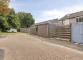 De voortuin, op het zuiden, en de achtertuin, op het noorden, zijn geheel bestraat. Blikvanger in de achtertuin is het overdekte terras, te bereiken vanuit de bijkeuken. Aan twee kanten staan houten schuttingen en naast de stenen berging is een poort naar de openbare weg. Deze straat is, net als de straat aan de voorzijde, heel rustig.