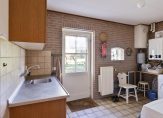 Vanuit de woonkamer en hal is de keuken te bereiken, met ruimte voor een eettafel. Ook als je hier zit, is er uitzicht om in te lijsten. De keukenopstelling in een L-vorm is voorzien van een gaskookplaat, afzuigkap combi-oven en een koelkast. De naastgelegen bijkeuken/wasruimte biedt de kans om een fantastische woonkeuken te realiseren.