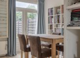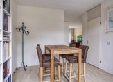 De woonkamer staat in verbinding met de keuken en de eetkamer. De eetkamer, met openslaande tuindeuren, kan ook als slaapkamer worden gebruikt. Zo biedt deze woning de mogelijkheid om gelijkvloers te wonen! Vanuit de woonkamer kijk je naar de voortuin en het hofje.