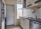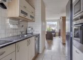 In de keuken staat aan twee kanten een wandopstelling, geplaatst in 2004. Het aanrechtblad is van marmer en de kookplaat, afzuigkap, vaatwasser (2023), oven en magnetron zijn ingebouwd. Ook is er ruimte om de wasmachine en een koel-/vriescombinatie neer te zetten. De aangrenzende bijkeuken/berging heeft een bergzolder (vlizotrap) en een deur naar de tuin.