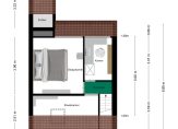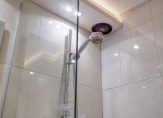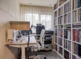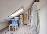 Er zijn maar liefst drie kamers op de eerste verdieping, waarvan twee aan de achterzijde zijn. De grootste kamer is de master bedroom en de naastgelegen kamer wordt als hobbyruimte gebruikt. Achter de schuifdeur is de derde kamer, met een groot dakraam en zonwering aan de binnenzijde.