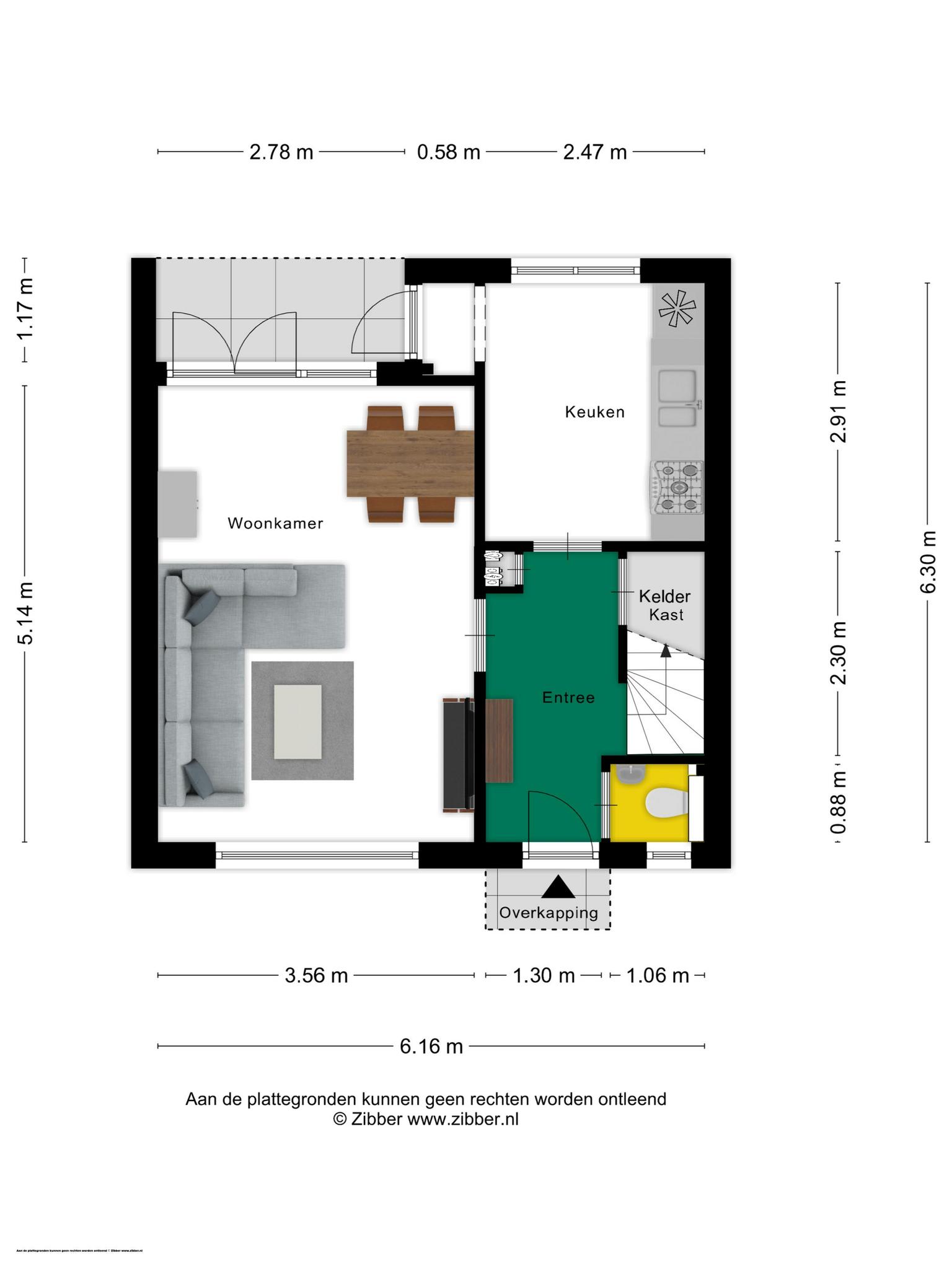 Grote ramen aan de voor- en achterzijde zorgen voor veel lichtinval in de woonkamer. Kies je een indeling met het zitgedeelte aan de voorzijde en het eetgedeelte aan de achterzijde, of toch andersom? Openslaande deuren geven toegang tot de tuin.