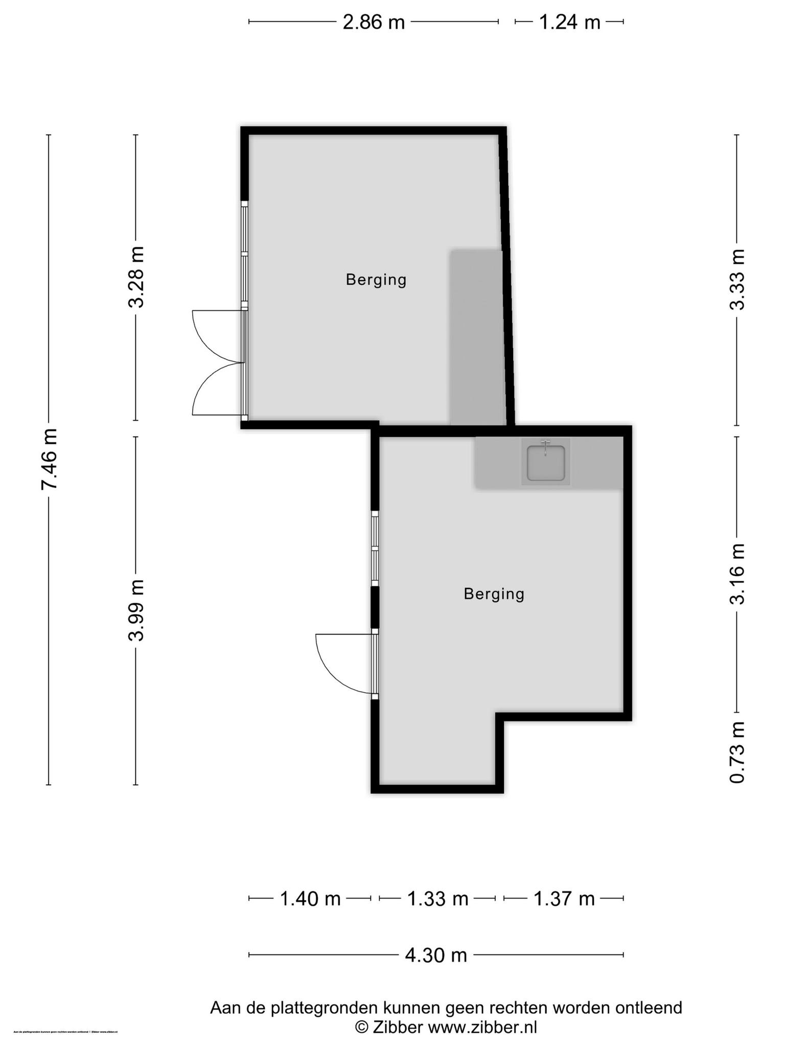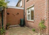 Als eerste is er een stenen berging/hobbyruimte, voorzien van elektra en water. Aan de achterzijde is een houten berging gebouwd, voorzien van elektra. De derde berging, met een overkapping aan de tuinzijde, zorgt ervoor dat er volop ruimte is voor de fietsen, tuinmeubels en het tuin-/klusgereedschap. Een poort geeft toegang tot de steeg.