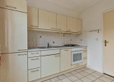 In de dichte keuken staat een bijna 3 meter lange wandopstelling met een gaskookplaat, afzuigkap, oven en een koelkast. De gaskookplaat, koelkast en vaatwasser zijn na 2018 vernieuwd. Ook vanuit de keuken is de achtertuin te bereiken.