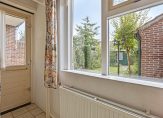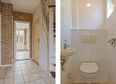 In de hal, aan de rechterzijde, zijn de toiletruimte met fonteintje en de trap naar de eerste verdieping. Onder de trap is een handige kelderkast en aan de andere zijde, naast de woonkamerdeur, is de meterkast.