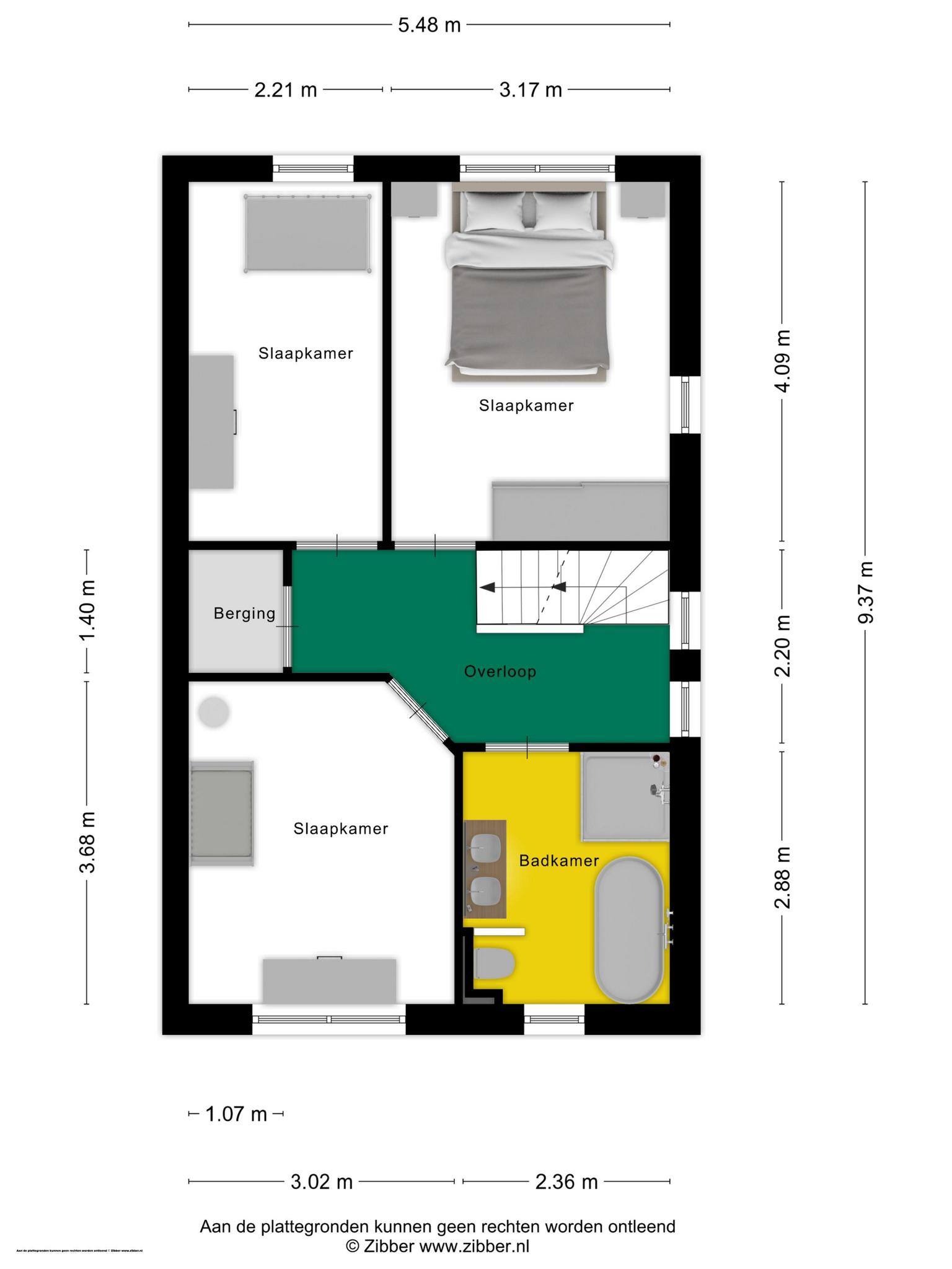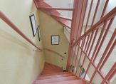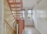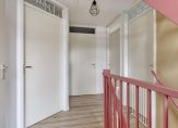 Volg de mooie, roze trap vanuit de hal en loop naar de ruime overloop. Hier zie je de vaste trap naar de tweede verdieping. Er is achter een van de deuren een handige berging. Twee ramen in de zijgevel zorgt voor prettige lichtinval vanaf de noordkant, waardoor het niet snel te warm wordt.