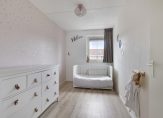 Aan de achterzijde zijn twee slaapkamers, ingericht als kinderkamer en master bedroom. Ook de slaapkamer aan de voorzijde is in gebruik als kinderkamer, met veel sfeer en een mooie laminaatvloer.