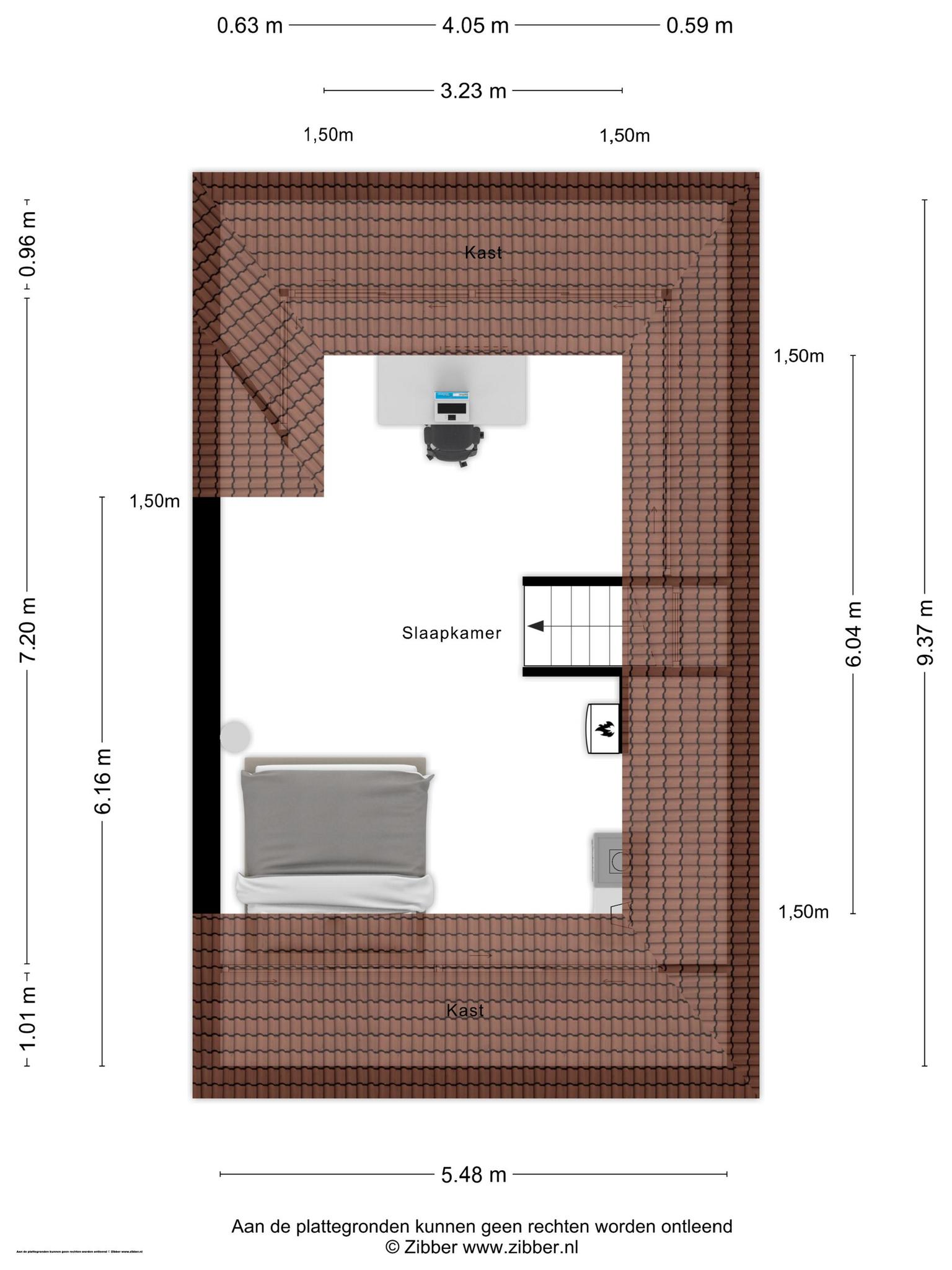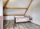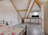 Aan het einde van de trap is een ruime, multifunctionele kamer met verwarming en lichtinval vanaf twee zijden. De hoge nok maakt de kamer optisch nog groter, en bergruimte is er in de schuinten van het dak. Deze kamer is in gebruik als logeer- en werkkamer, maar een andere invulling is ook mogelijk. Zelfs splitsen in twee kamers is een optie, als er aan de voorzijde een dakraam wordt geplaatst.