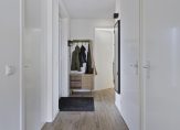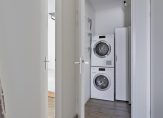 Links van de toiletruimte en badkamer is een inpandige berging met de opstelling van de warmtepomp, boiler en de aansluitingen voor de wasapparatuur.