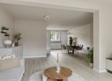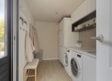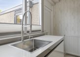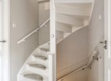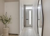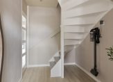 In de hal zijn de meterkast, trapopgang en de vernieuwde toiletruimte met wandcloset. Lichte, neutrale kleuren bepalen de sfeer en de afwerking is fraai. Dit geldt niet alleen voor de hal, maar ook voor de woonkamer en open keuken.