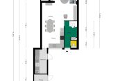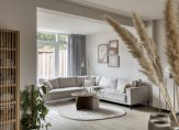 In 1996 is de woonkamer aan de achterzijde uitgebouwd, waardoor de ruimte een stuk groter is geworden. Aan de tuinzijde, bij de openslaande deuren, is het zitgedeelte en het eetgedeelte grenst aan de keuken. Voor een 6-persoonstafel, een dressoir, wandmeubel en een grote hoekbank is meer dan genoeg plek.