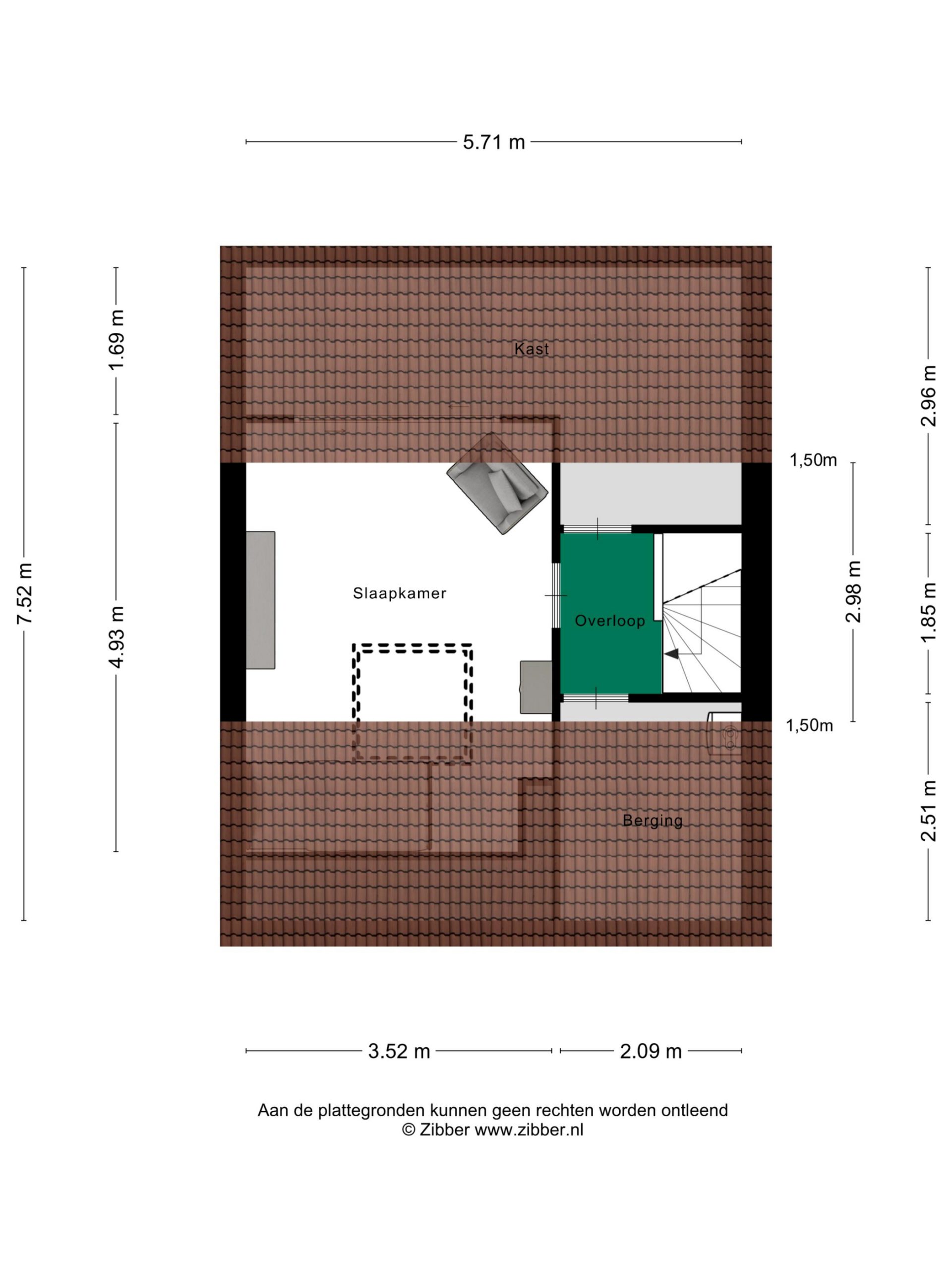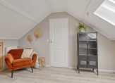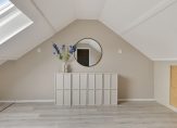 De overloop op deze verdieping biedt toegang tot twee bergingen en de vierde slaapkamer, met een groot dakraam aan de voorzijde. Ook deze kamer is fraai afgewerkt, waardoor je zo kunt beginnen met inrichten. Wil je meer ruimte, dan is het mogelijk om een dakkapel te plaatsen.