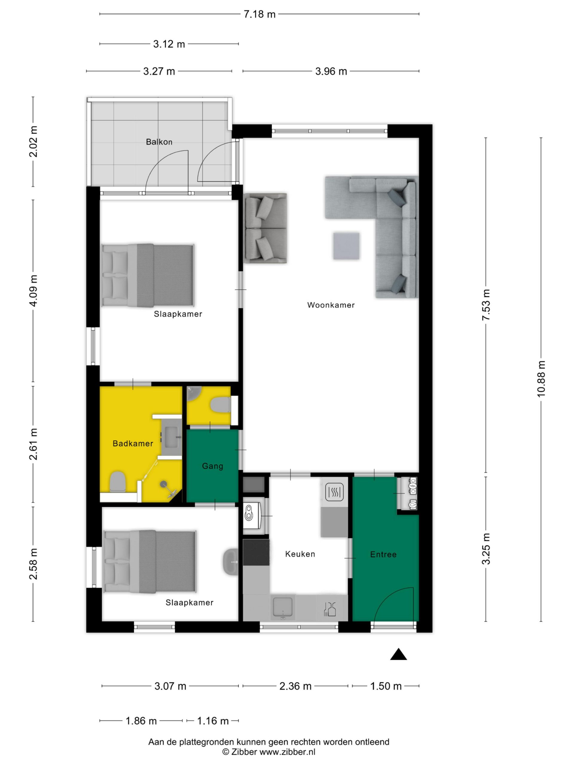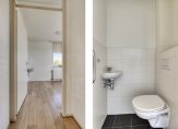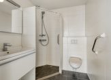 Het appartement beschikt over twee slaapkamers, waarvan de hoofdslaapkamer grenst aan de badkamer met douche, wastafel, toilet en wasmachineaansluiting. Daarnaast is er een apart toilet in het tussenportaal aanwezig.