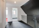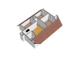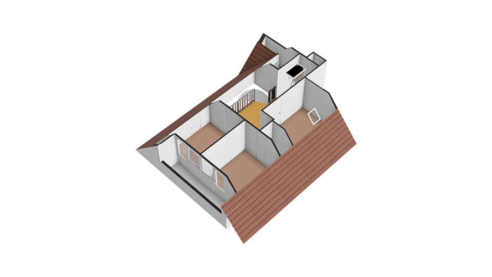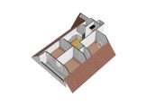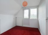 De trap in de hal geeft toegang tot de overloop met vide. Vanaf hier zijn drie slaapkamers en een toiletruimte te bereiken. Beide slaapkamers aan de voorzijde geven toegang tot de loggia, met prachtig uitzicht, en alle slaapkamers zijn voorzien van een berging in de schuinte van het dak. De toiletruimte met wastafel kan worden vergroot, waardoor de ruimte verbouwd kan worden tot badkamer.