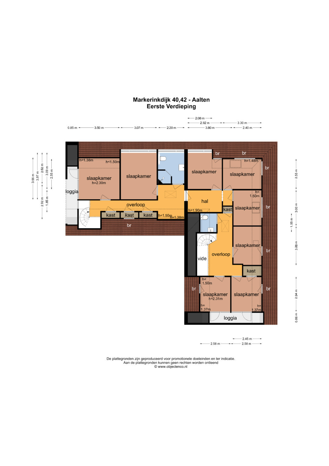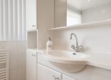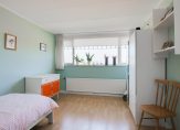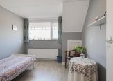 Op de eerste verdieping zijn maar liefst vijf slaapkamers, waarvan een met een loggia. Er zijn verder twee slaapkamers aan de achterzijde die, net als de badkamer, dankzij de dakkapel verrassend ruim zijn. De badkamer is ingedeeld met een ruime douche, wastafelmeubel en toilet. In drie slaapkamers is bergruimte in de schuinte van het dak.