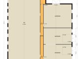 Het linkerdeel van de schuur is ingedeeld met een dubbele hal een lange gang, een berging, toiletruimte, wasruimte, kantoor en een hal van circa 297 m2. Deze grote ruimte, perfect voor een hobbymatige invulling, als caravanstalling of te verbouwen tot stallencomplex, heeft een nokhoogte van circa 3.90 meter.