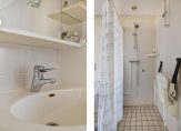 Behalve drie slaapkamers zijn er ook een diepe bergkast en een badkamer (circa 2004) op deze verdieping. De badkamer heeft wand- en vloertegels in lichte kleuren en is ingedeeld met een ruime douchehoek, wandcloset en een wastafelmeubel.
