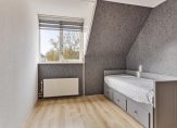 Vanaf de overloop zijn drie slaapkamers te bereiken, waarvan twee aan de voorzijde. Deze kamers hebben een gezamenlijke dakkapel en een nette, bruine laminaatvloer. Aan de achterzijde is de hoofdslaapkamer, met een dakkapel en een nis voor een grote garderobekast. In deze kamer ligt een laminaatvloer met een grijze tint.