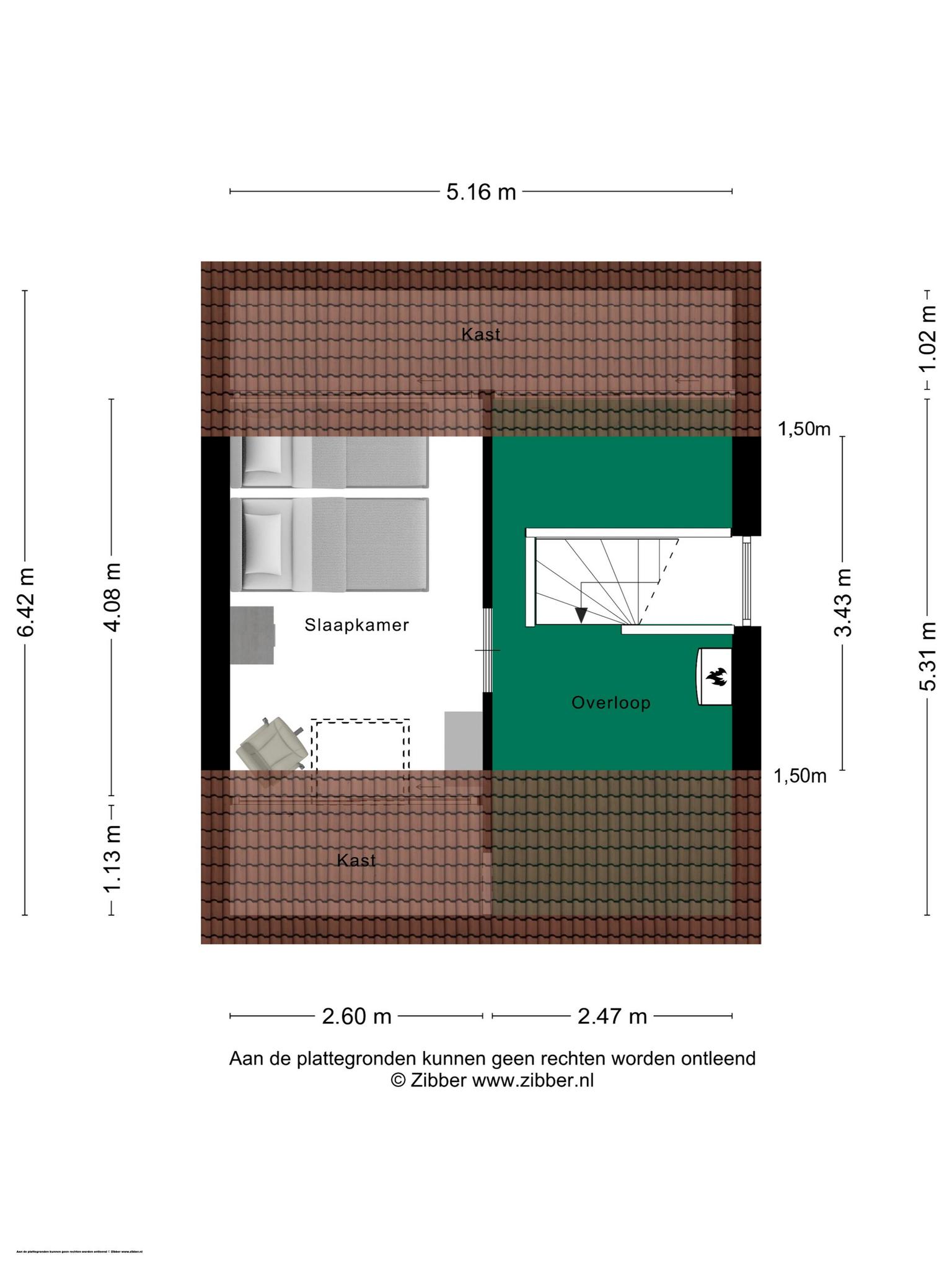 Op deze verdieping zijn de voorzolder en een ruime slaapkamer, met een dakraam aan de achterzijde. In de schuinten van het dak is volop bergruimte en het dak met hoge nok is geïsoleerd. Op de overloop hangt de HR-ketel, die voor verwarming en warm water in huis zorgt.