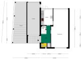 Begane grond: Aan de linkerzijde van de woning, naast de garage, is de entree van deze woning. In de hal zijn de meterkast, de toiletruimte met fonteintje en de trap naar de eerste verdieping. Onder de trap is een handige bergkast, voor de stofzuiger of te gebruiken als garderobe.