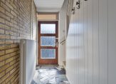 Aan de voorzijde, de kant van de Koppelstraat, is de tweede entree met een lange hal. Dit is een pluspunt voor de zzp’er en thuiswerker, want aan deze hal grenst een kamer die heel geschikt is als werkkamer/praktijkruimte.
