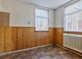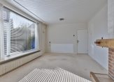 In de hal zie je de trapopgang en een marmeren vloer van breuksteen. Onder de trap is een handige bergkast, die als garderobe gebruikt kan worden. Rechts in de hal is een deur naar de ruime woonkamer, met lichtinval aan twee zijden en een grote open haard. Hier kun je gaan verbouwen, stylen en inrichten totdat de woonkamer perfect bij je past.